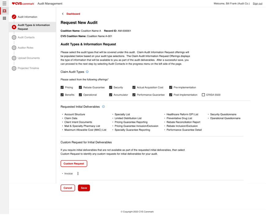 A live application facilitating collaboration and secure data exchange between auditors and CVS Health.