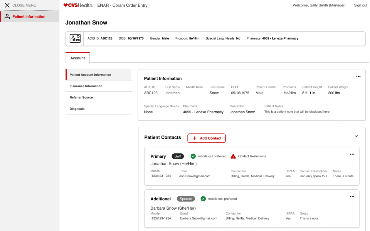 A live application that allows Account Representatives to manage patient accounts, verify insurance, and handle prescription placements or refills.